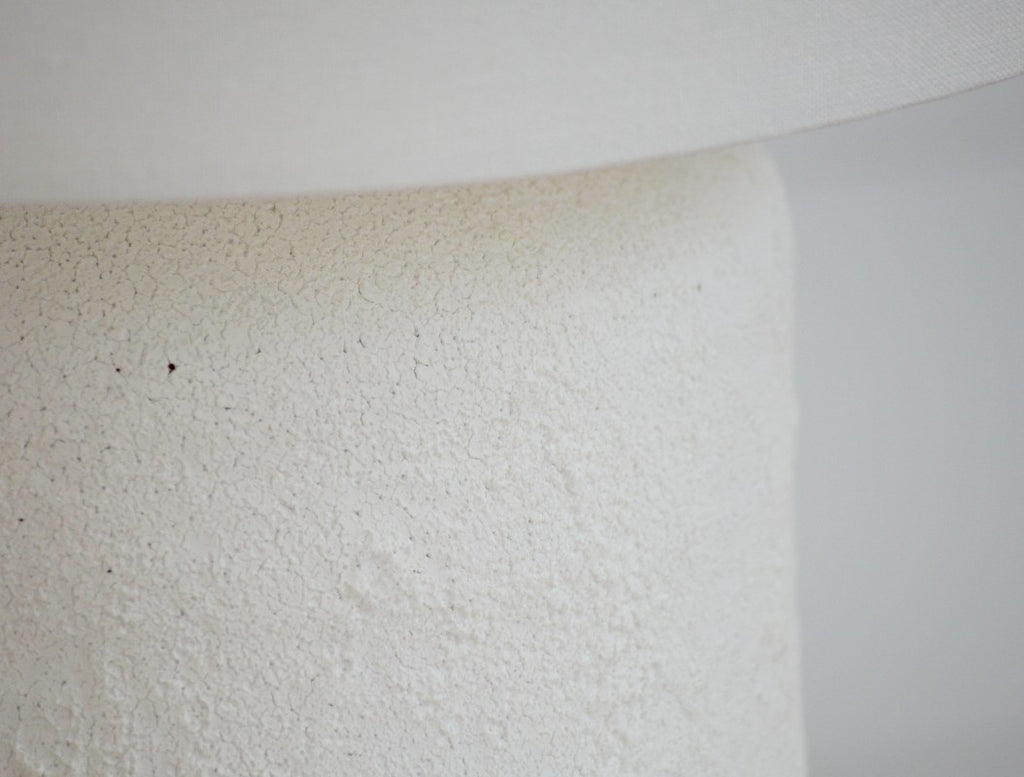 A classic look with a modern touch of textural detail that pairs perfectly with the off-white linen fabric shade. This neutral, yet striking, lamp will blend into any interior with ease.