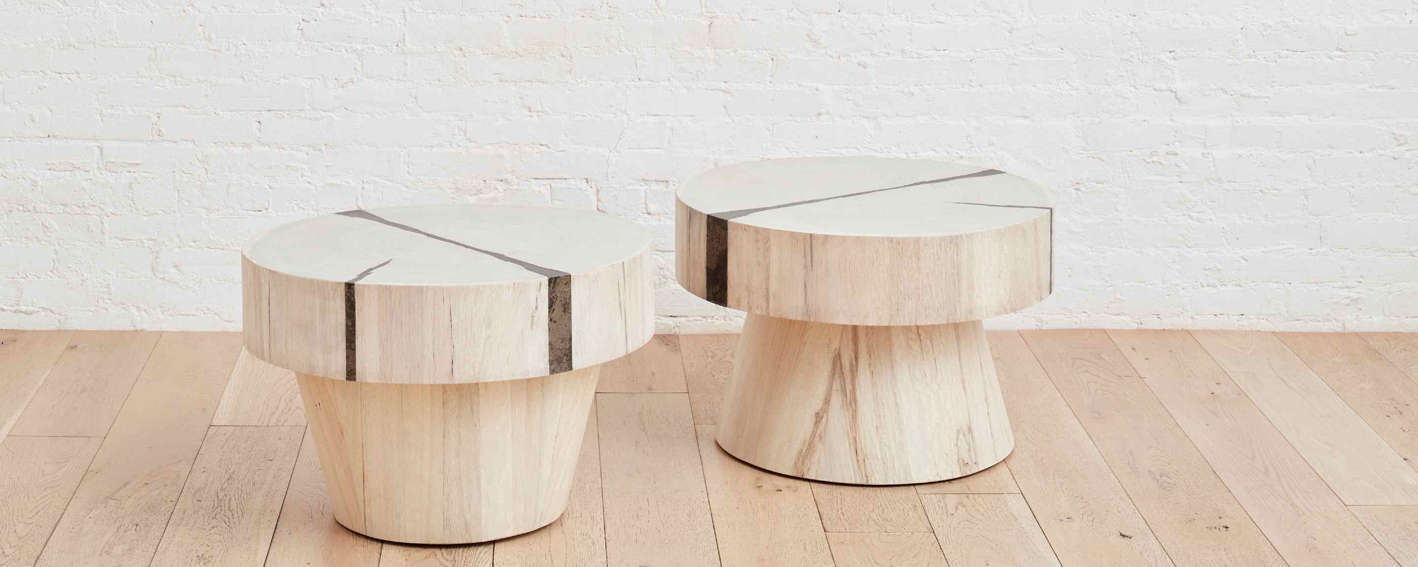 The simple form of these Mexican handcrafted side tables puts the focus on the sustainably harvested Mexican oak veneer. The iron detail evokes a lightning strike on a tree. Please note variation is to be expected. We believe this only adds to the beauty of each individual piece.