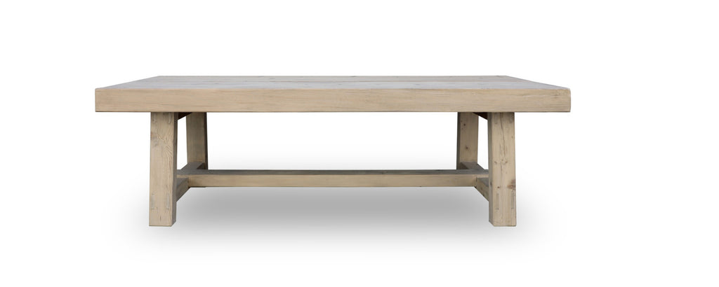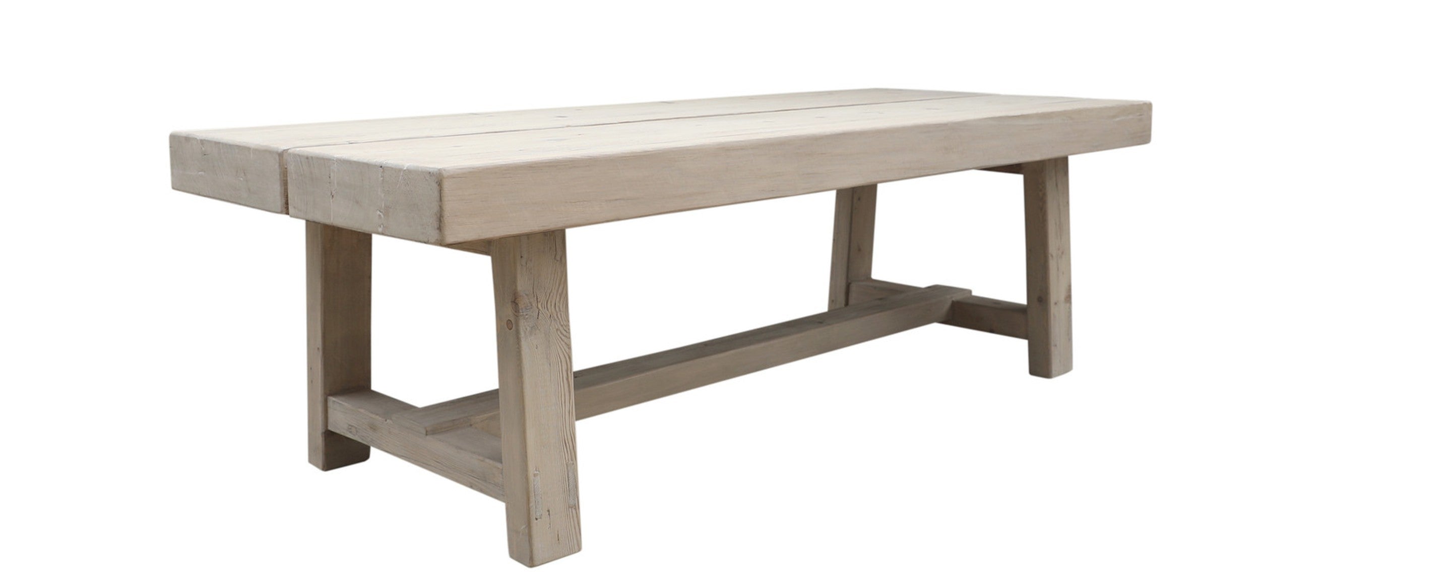 The Big Sur Dining Table is made with two 5" thick pieces of rustic pine. The unsealed solid pine includes distinctive nicks, splits, cracks, knots, nail holes and imperfections that speak to the wood's age and provenance. It is these elements of the table that make it extremely durable and perfect for everyday use. Available in two lengths. 98" or 130" please call for availability.