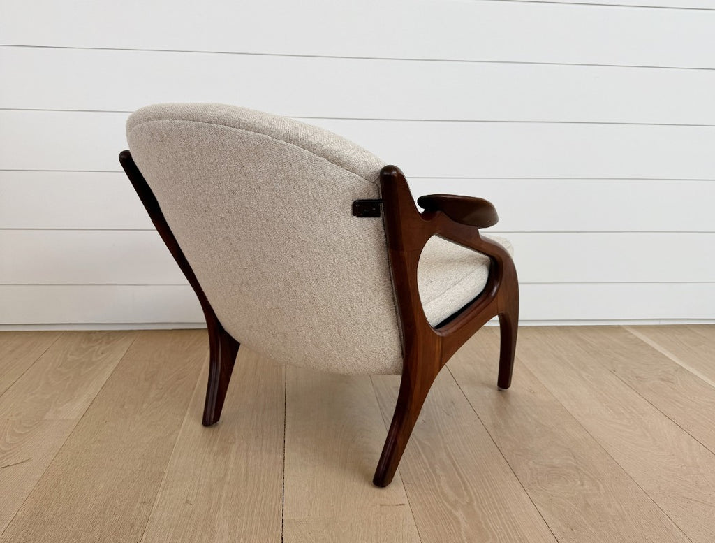 Newly reupholstered Adrian Pearsall teak midcentury chair.