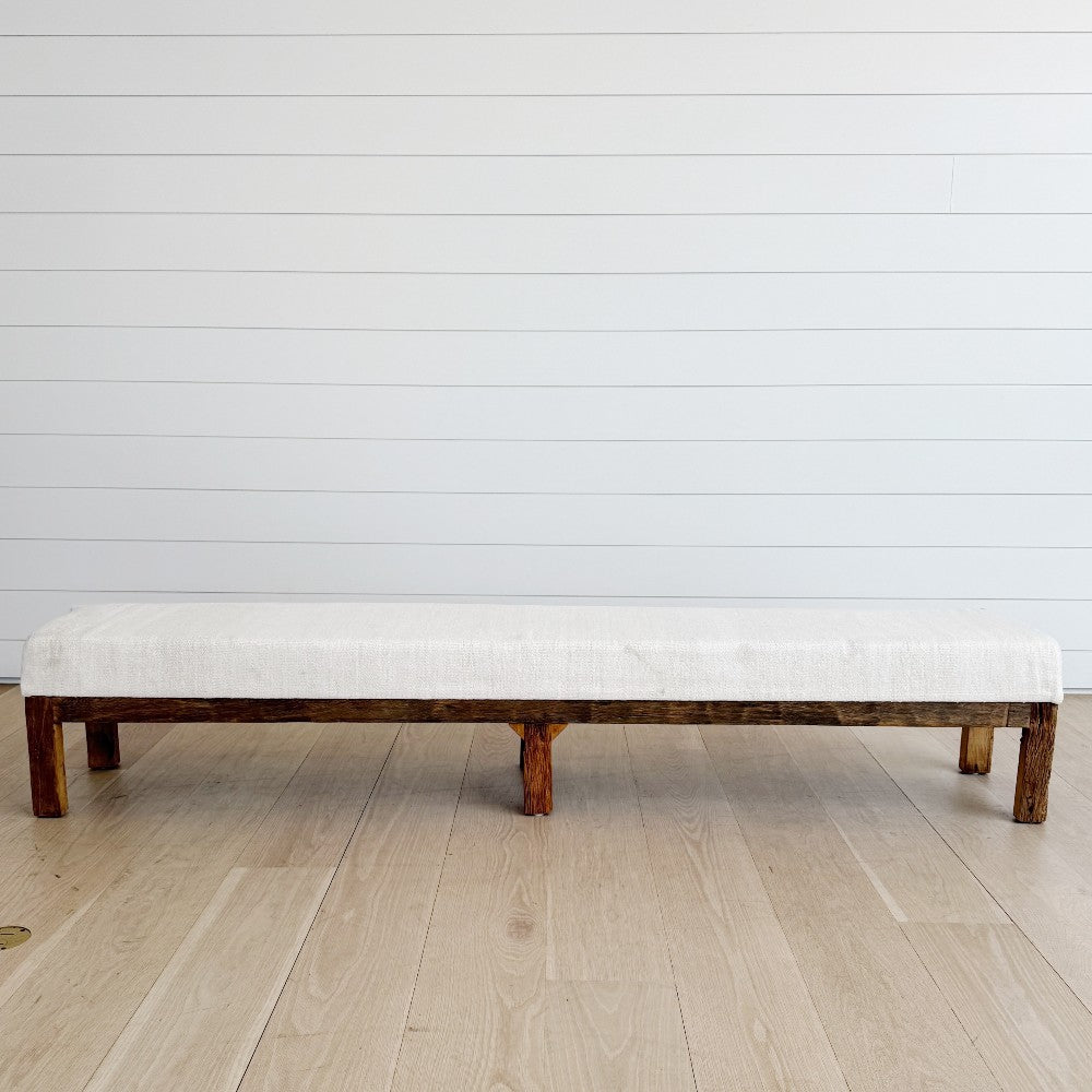 hemp kilim & oak bench 96"