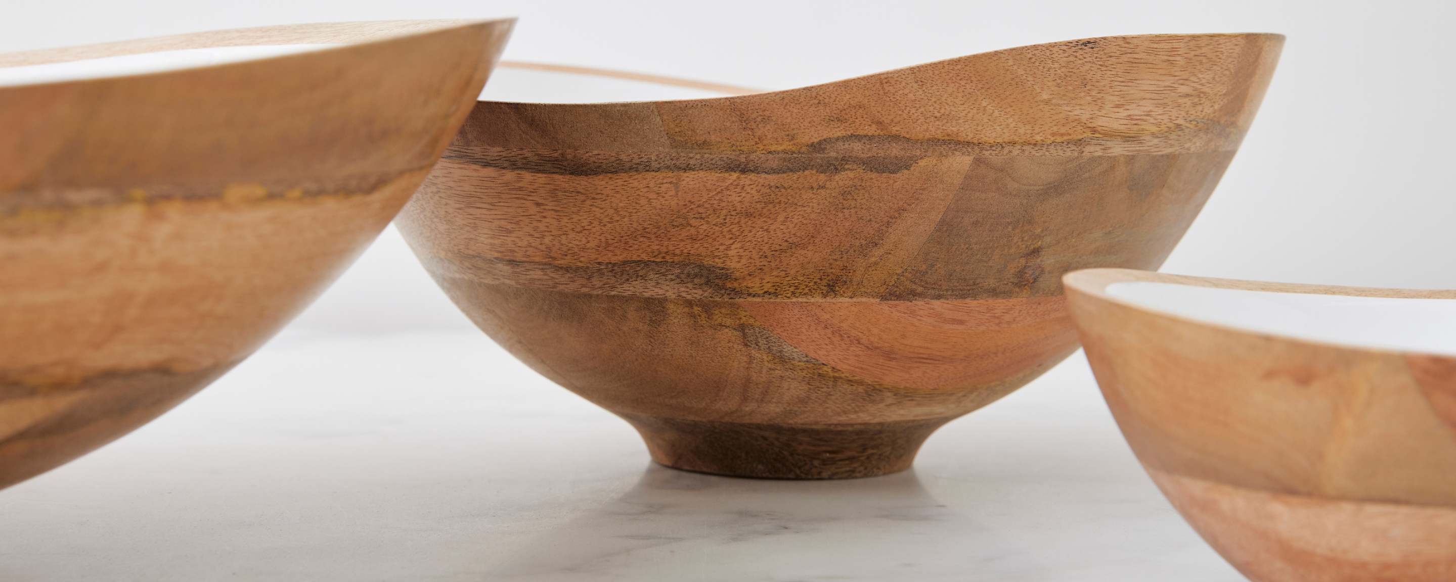 Mango wood bowls with enamel. Food safe.