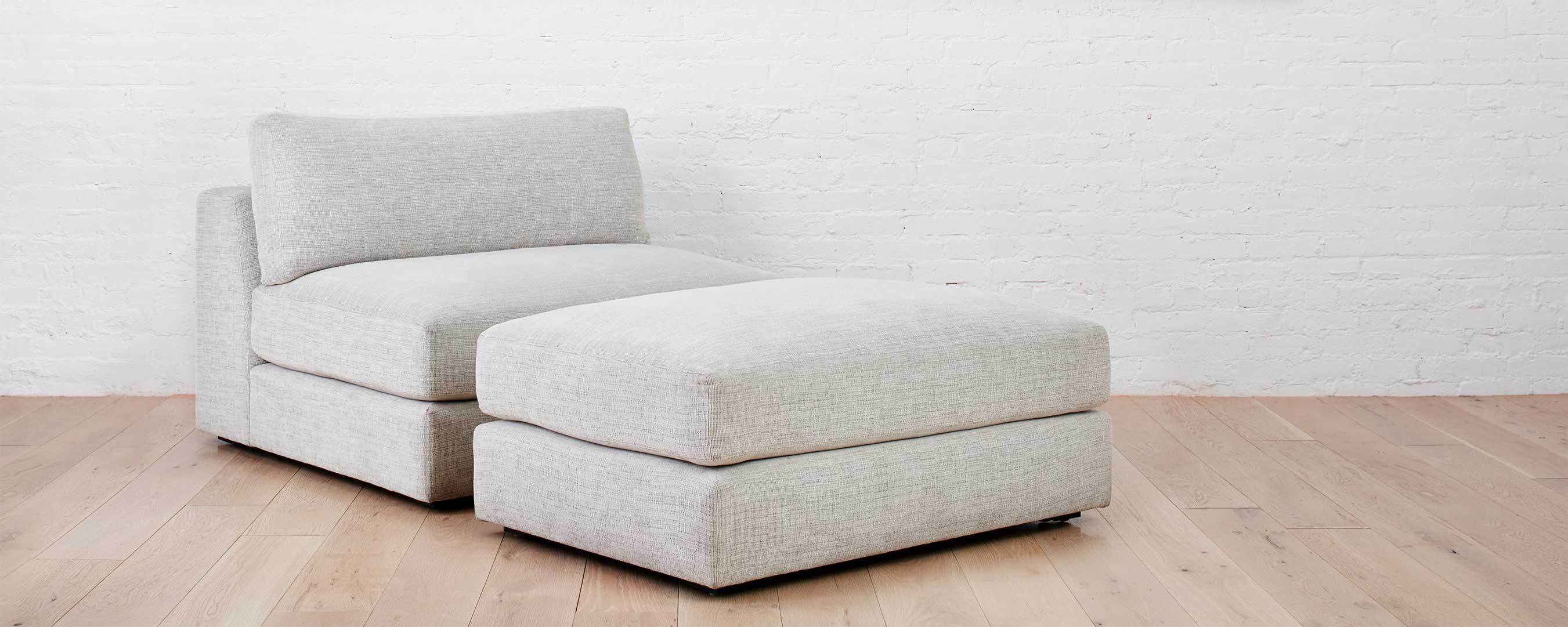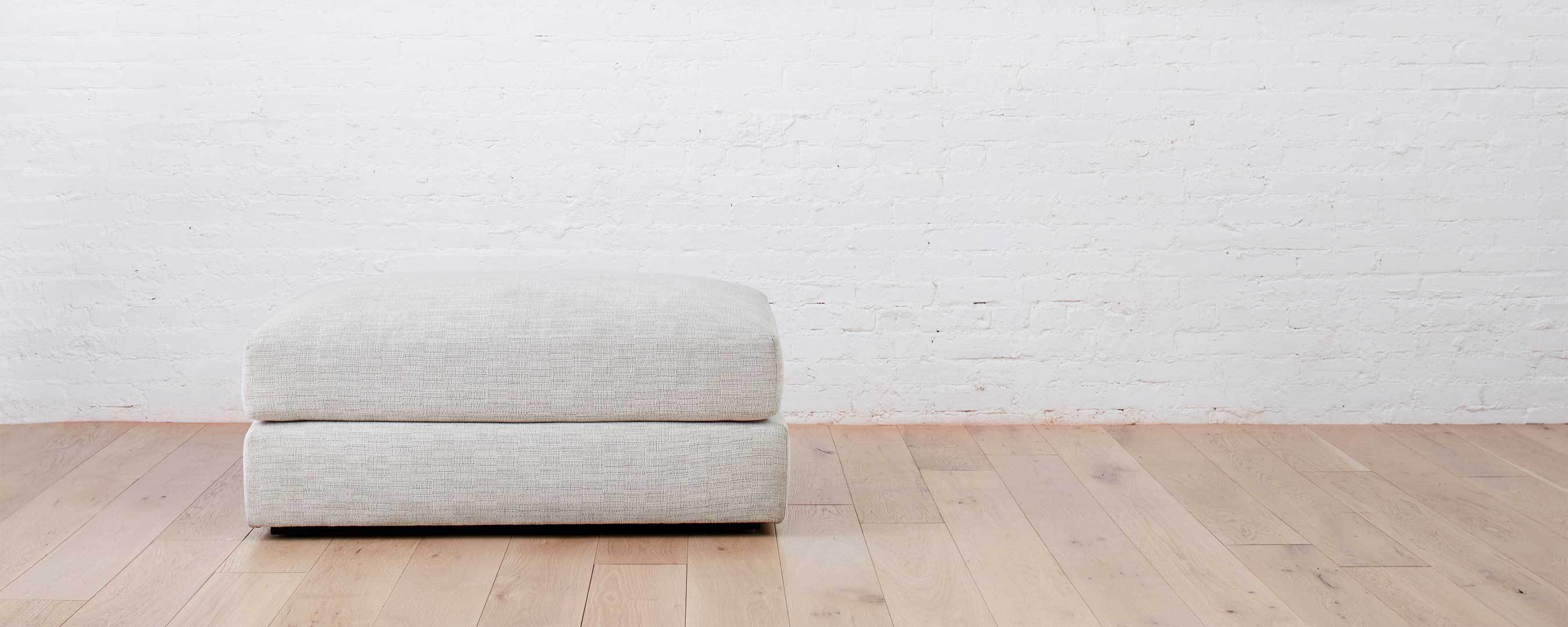 A super functional, double stacked, upholstered ottoman to use as it was intended, or add on to any of the other Lazy Point components (the armchair, the sofa) to create a chaise. Custom sizing means you can scale the ottoman to your space, and even use it as a coffee table. Made by hand in North Carolina, using local, sustainable hardwoods and eco-friendly materials. |