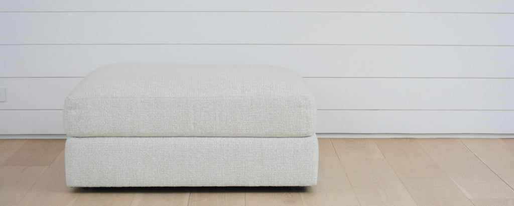 Comfortably sized ottoman perfect for resting your legs on or extra seating to catch up with old friends. Versatile design to match the hudson sofa. Available in dozens of fabrics. Made by hand in North Carolina, using local, sustainable hardwoods and eco-friendly materials. |