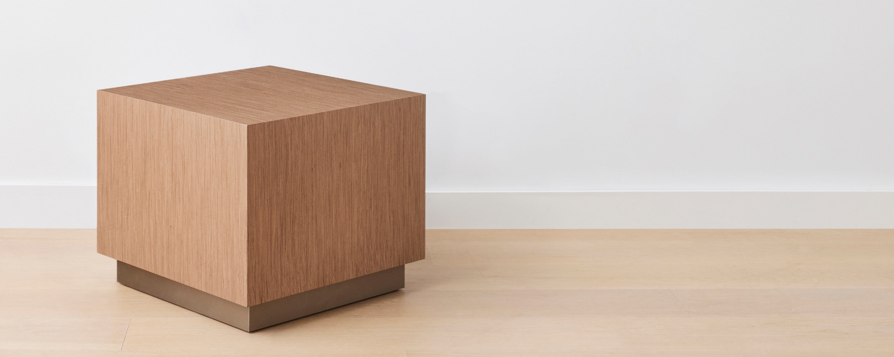 After customizing our mercer cube end tables for various design projects, we decided to make the mercer nightstand part of our permanent collection. They are available in a variety of wood finishes and custom sizes. The matte bronze metal trim compliments the walnut and silver oak shown here. Other metal finishes are also available. Homenature exclusive.